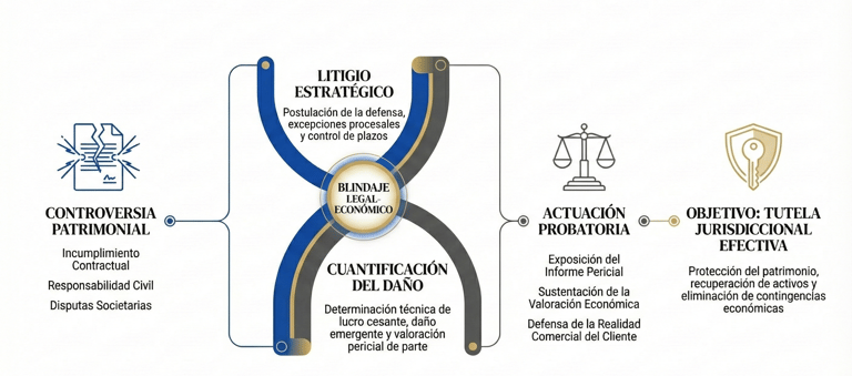 Peritajes de Parte en Litigios Civiles y Comerciales: Valoración precisa de daños, lucro cesante y daño emergente con rigor actuarial.